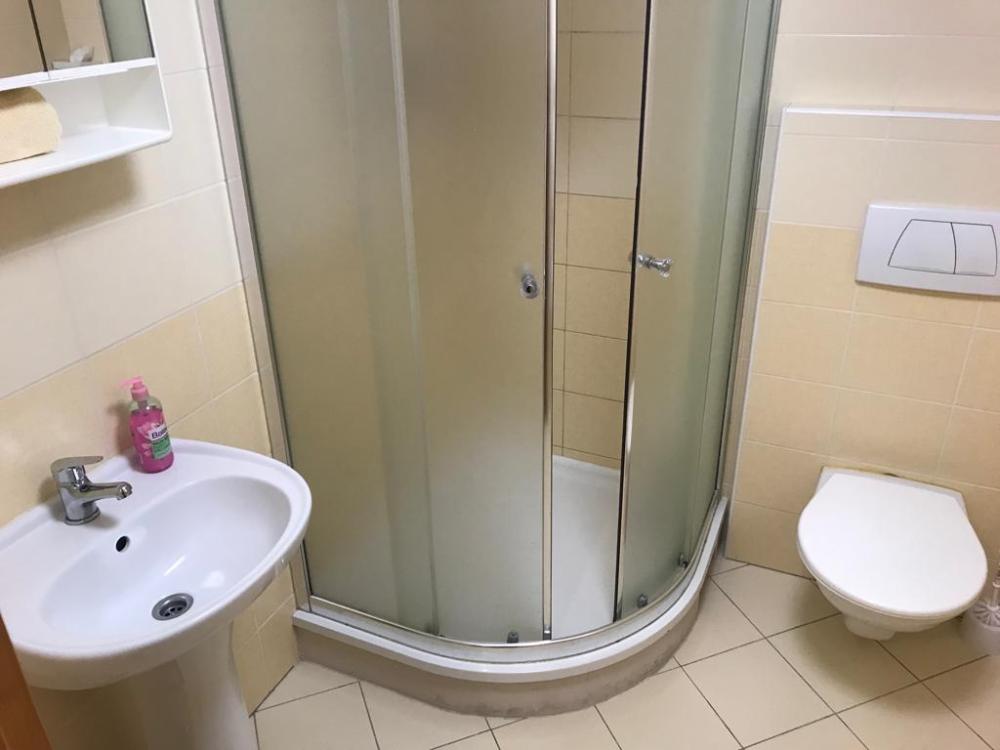Čtyřlůžkový pokoj s vlastní koupelnou a WC, sprcha.