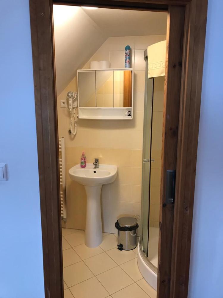 Dvoulůžkový pokoj s vlastní koupelnou sprcha a WC, s možností 1 přistýlky. Manželská postel a rozkládací pohovka.